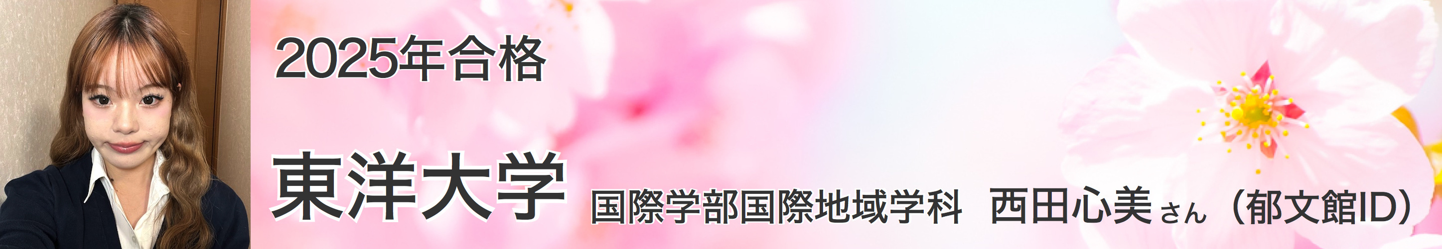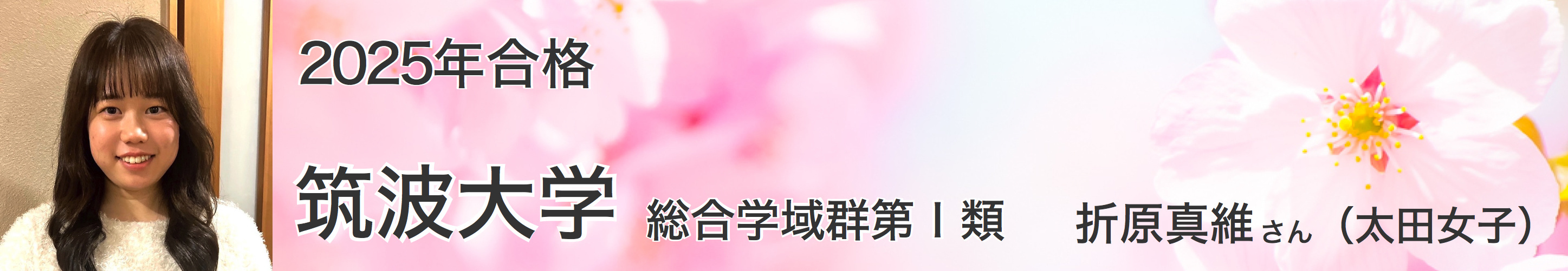 私は高校1年生の春に入塾し、数学を隆之先生に、英語を浩之先生に、国語を中村先生に教わりました。先生方の「間違えても(生徒を)否定しない」授業のおかげで、伸び伸びと勉強に打ち込めたと思います。また、推薦の対策として未環子先生に面接練習をして頂きました。未環子先生の卓越した言語化能力により、自分と真正面から向き合い、自分の価値観を理解し、自分がやりたいことの本質を見つけることができました。一生ものの羅針盤をいただけたと思っています。
